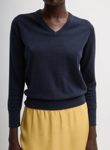 Skinlike Mercerized Wool Shrunken V-Neck Sweater