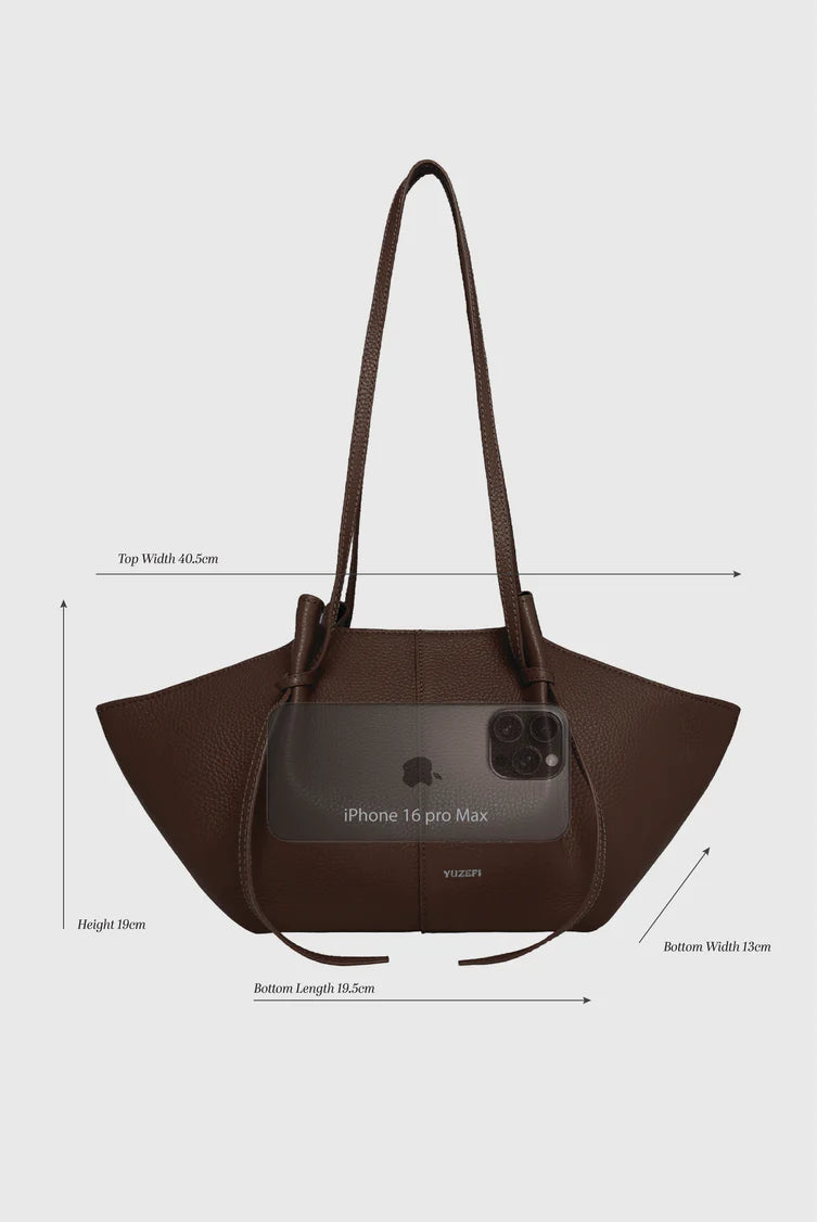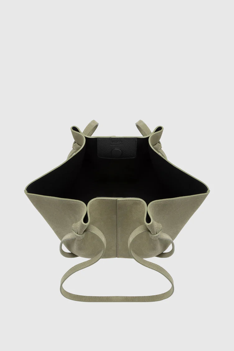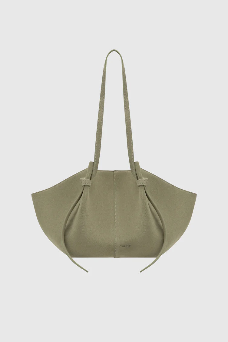 Mochi is our elevated everyday Tote bag. The bag features our distinctive organic curves, folds and knots, which is crafted from luxurious Italian Olive Suede.